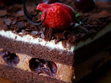 Forêt Noire Framboise (Raspberry Black Forest) is a modern twist on the classic Black Forest Cake. It replaces the traditional sour cherries w/ fresh raspberries,offering a brighter flavor profile while allowing you to indulge in all the flavors with moist chocolate cake and chocolate mousse, enveloping the raspberries. We then top it with a layer of vanilla cream and dark chocolate shavings. We offer two serving sizes: